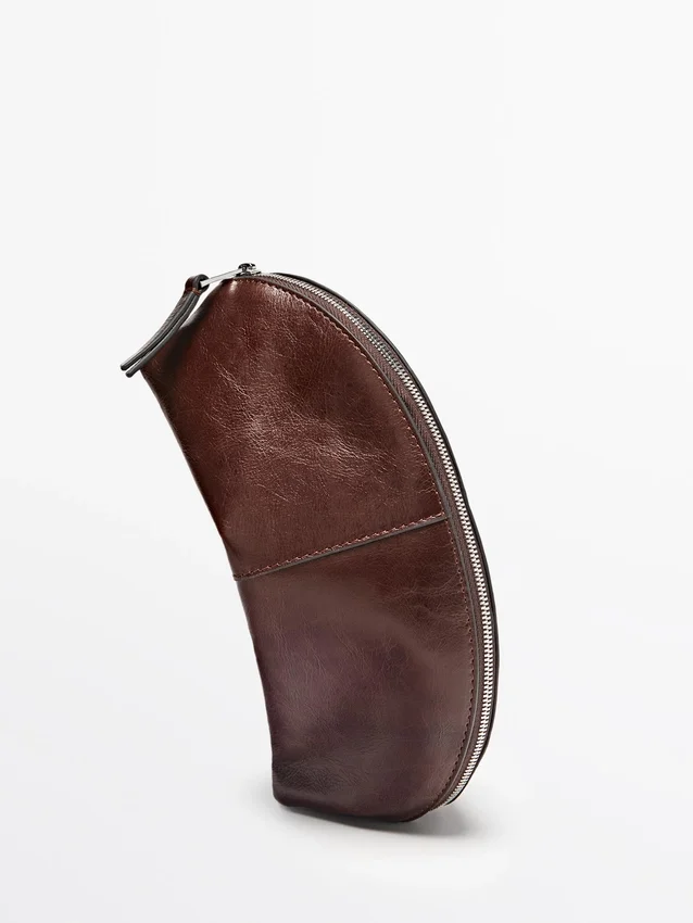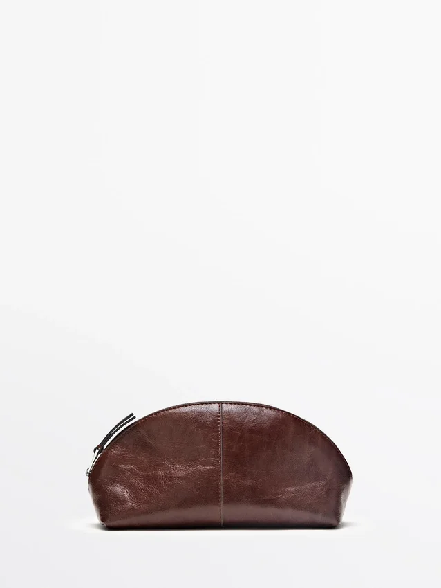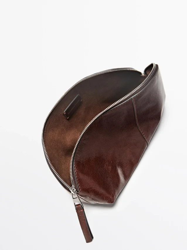 Borsa da toilette in pelle di vacchetta con finitura in pelle nappa. Chiusura con cerniera.