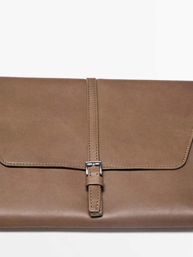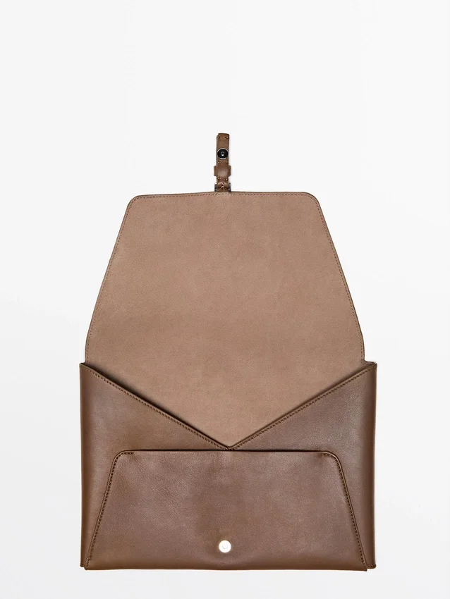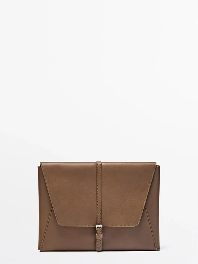 Custodia per iPad in pelle di vacchetta con finitura nappa. Chiusura con linguetta a bottone magnetico.