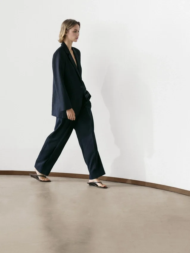 Blazer in 100% lino. Colletto con revers a V e asola. Maniche lunghe. Chiusura a due bottoni. Due tasche con patta. Foderata. Questo capo fa parte di un abito da uomo.