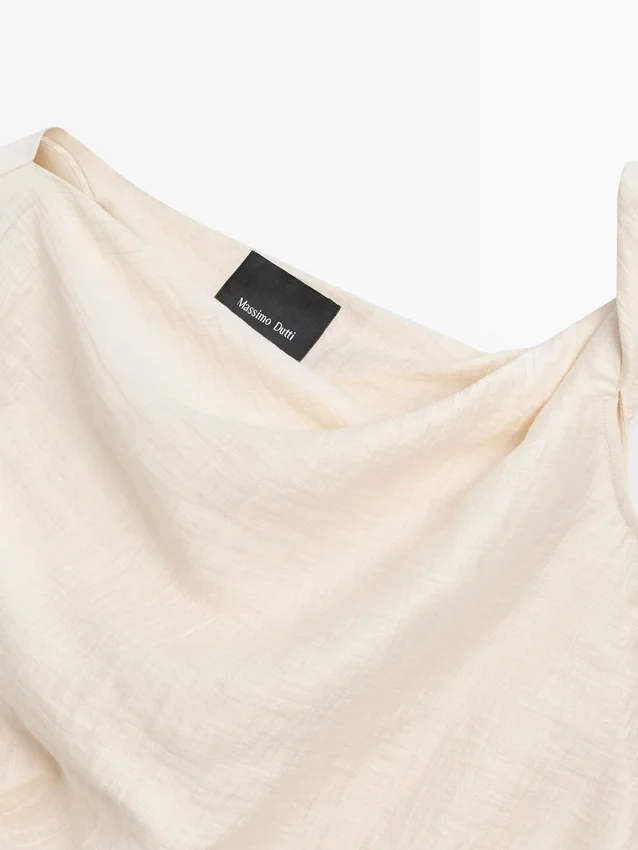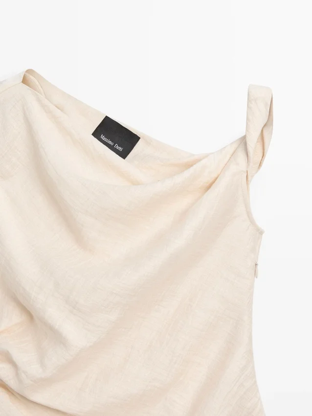 Top asimmetrico con dettagli drappeggiati. Senza maniche. Dettaglio annodato. Capo abbinato disponibile.