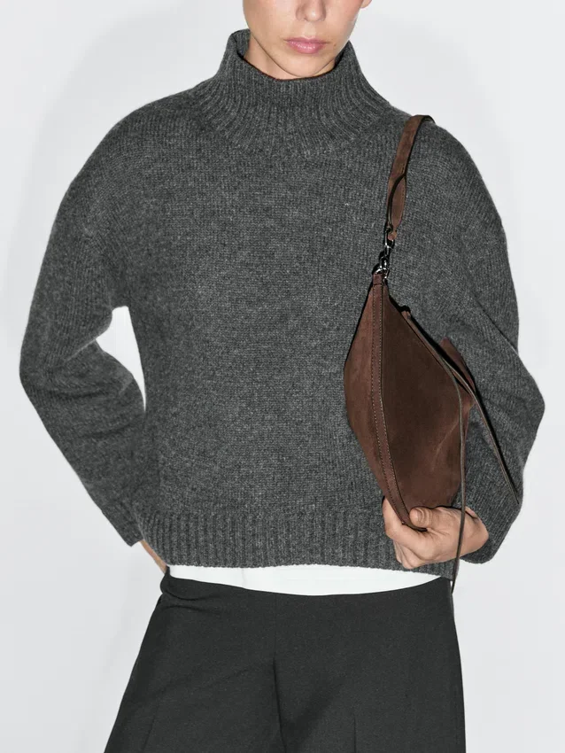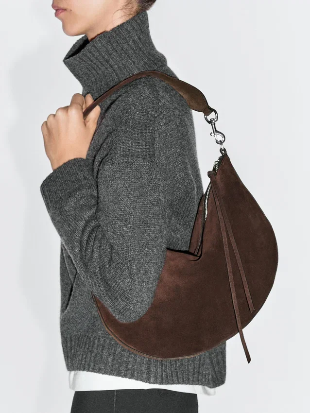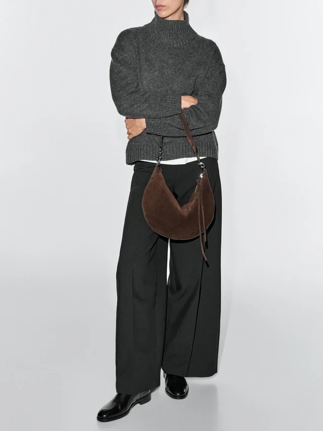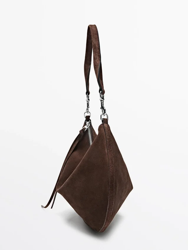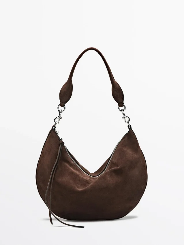 Borsa a mano realizzata in pelle bovina con finitura in pelle crosta. Un manico/tracolla. Chiusura con cerniera. Scomparto principale. Si chiude con linguetta in pelle.