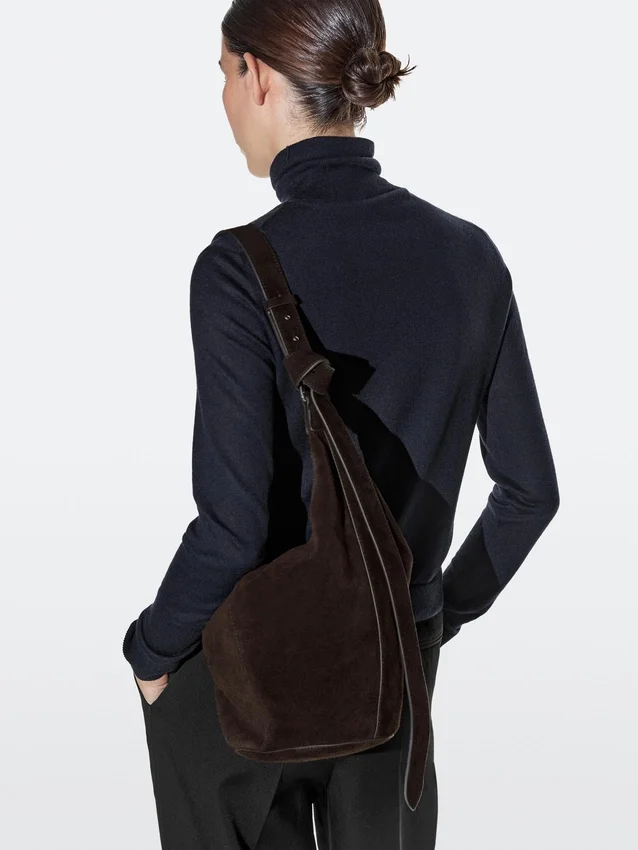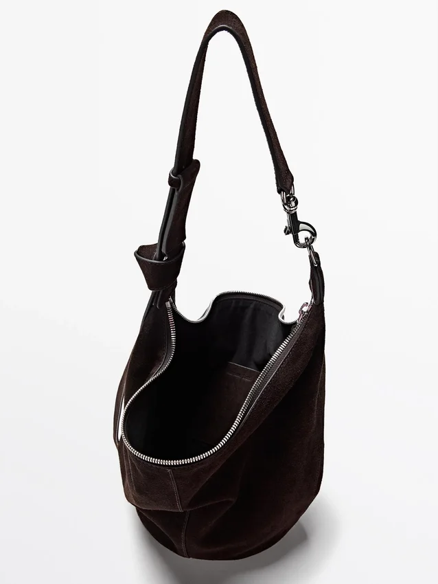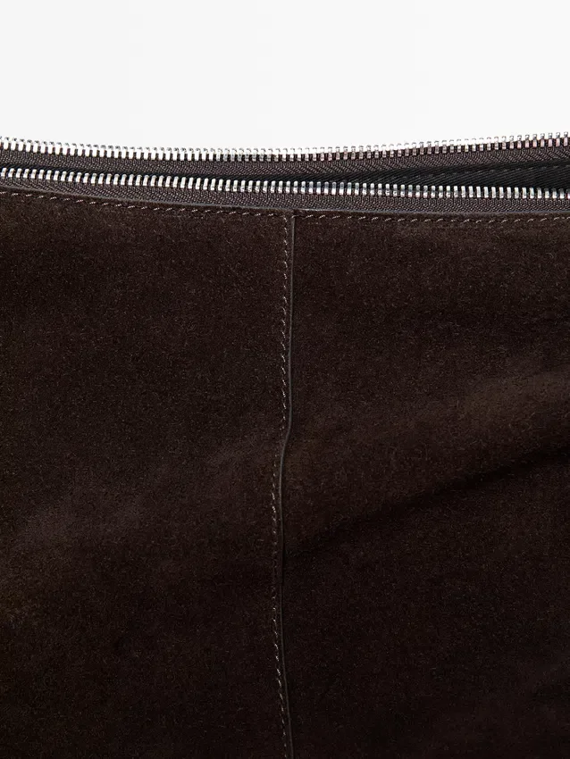 Borsa realizzata in pelle bovina con finitura in pelle crosta. Tracolla regolabile. Chiusura con cerniera. Una tasca interna. Fodera in cotone.