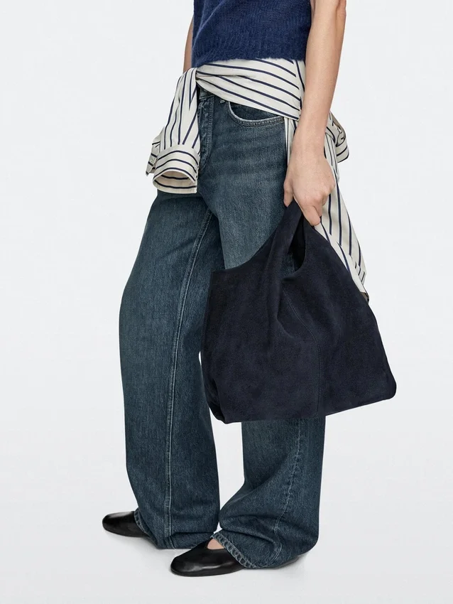 Borsa tote. Chiusura con bottone a scatto magnetico. Due manici e tracolla. Fodera in cotone. Realizzata in pelle bovina con finitura in pelle crosta.