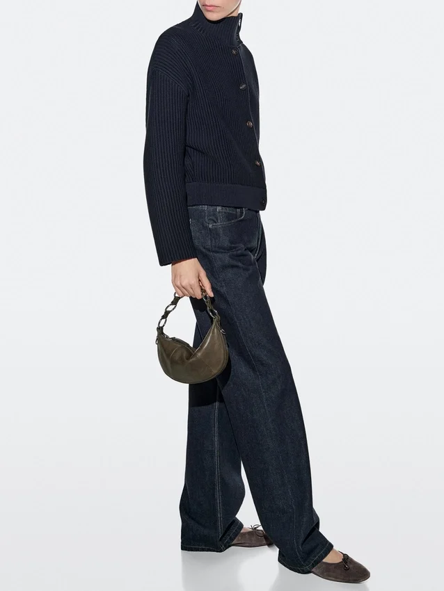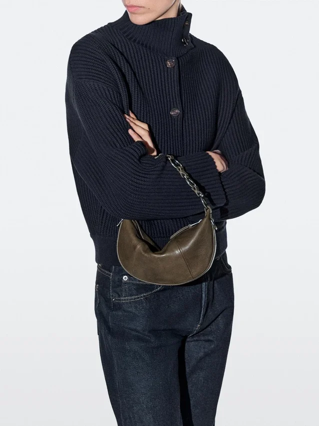 Mini borsa a mano in pelle di vacchetta con finitura nappa. Un manico/tracolla. Chiusura con cerniera. Fodera in cotone.