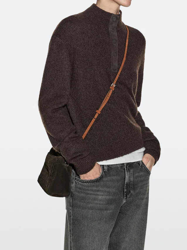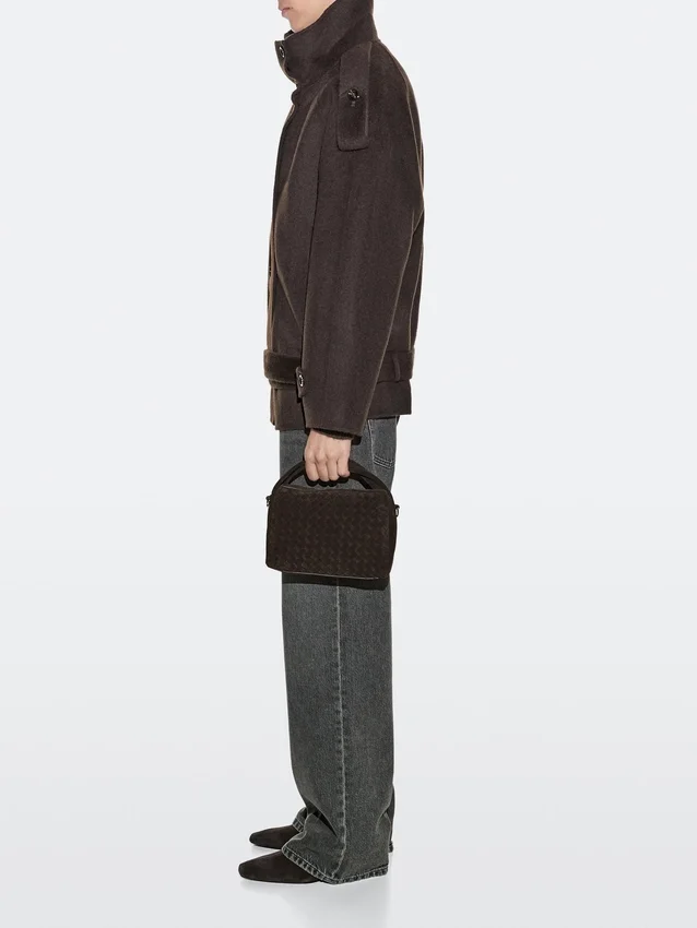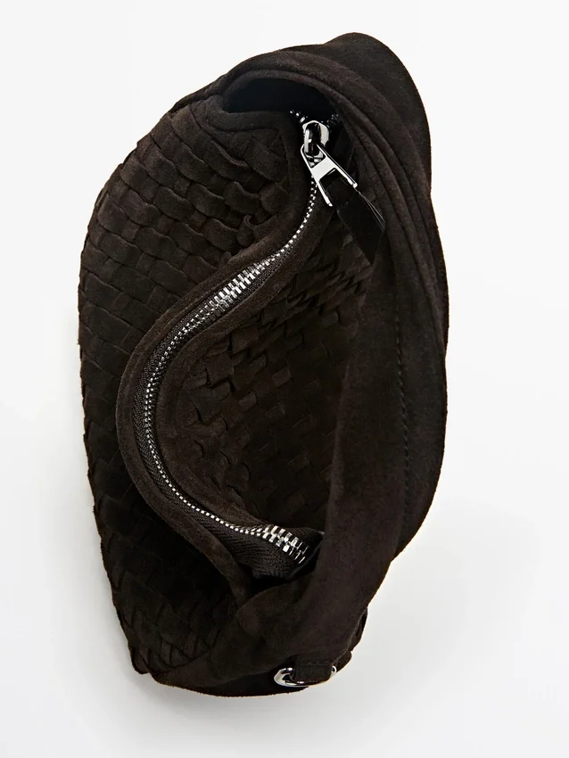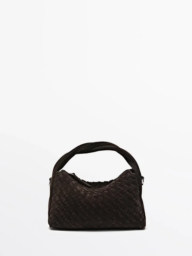 Borsa realizzata in pelle bovina con finitura in pelle crosta. Chiusura con cerniera. Tracolla e tracolla regolabile. Dettaglio intrecciato.