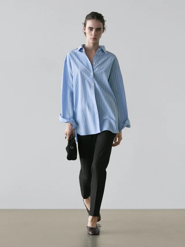 Camicia a maniche lunghe. Colletto classico. Polsini abbottonati. Chiusura frontale con bottoni. Stampa a righe.