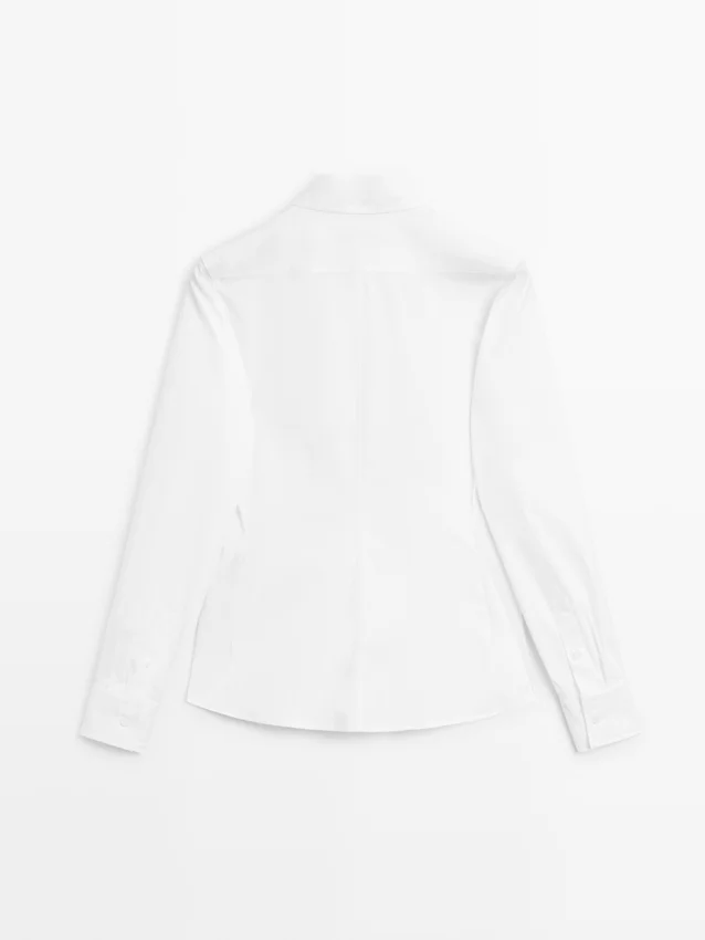 Camicie realizzate in tessuto misto cotone. Silhouette leggermente aderente, che conferisce un aspetto più definito e slanciato. Maniche lunghe con polsini abbottonati. Colletto a camicia. Chiusura frontale con bottoni.