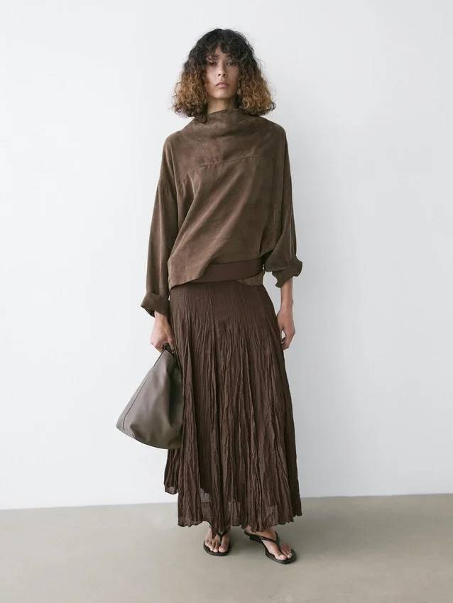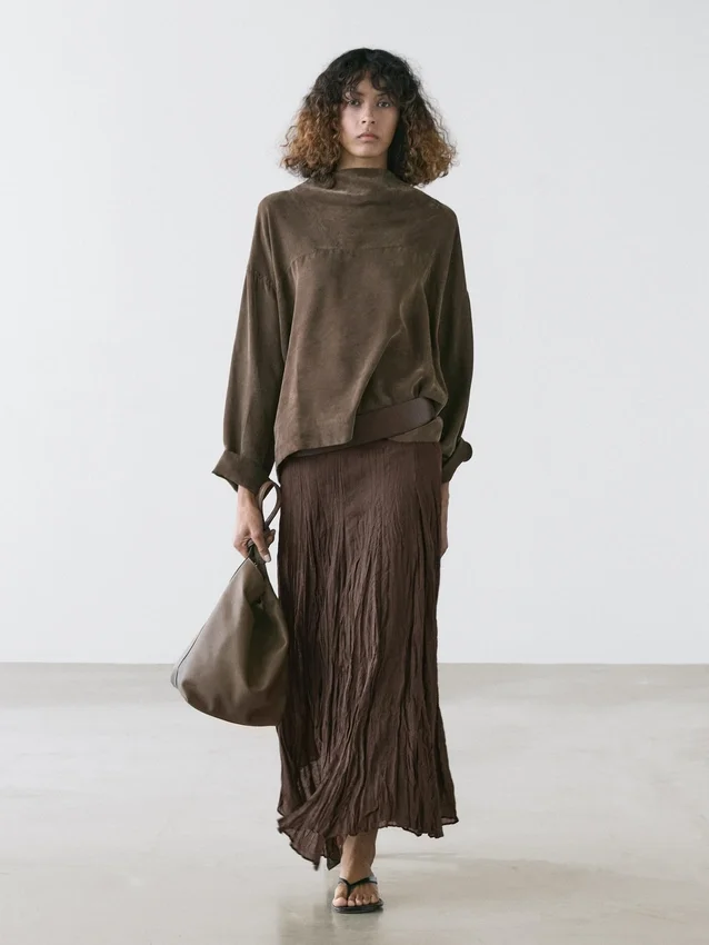 Camicia fluida. Maniche lunghe e ampie. Dettaglio drappeggiato sullo scollo.
