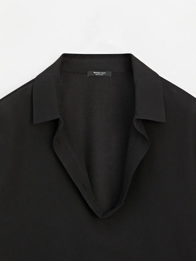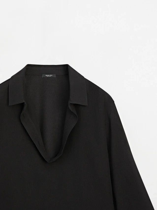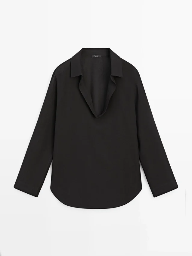 Camicia realizzata in tessuto misto cotone. Maniche lunghe con polsini abbottonati. Colletto con revers a punta.