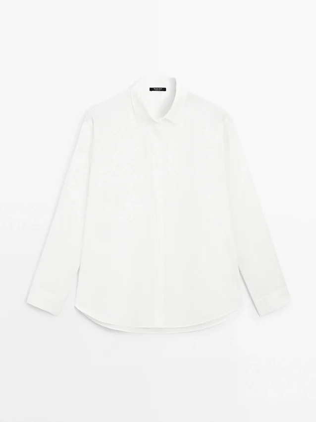 Camicia in popeline con bottoni nascosti