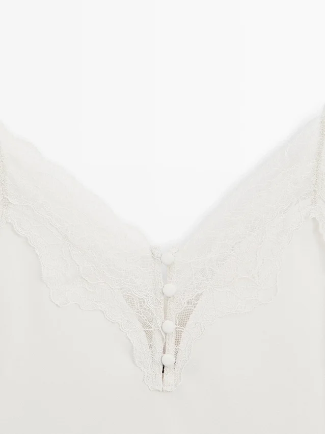 Canotta. Spalline. Dettagli in pizzo. Dettagli con bottoni ricoperti.