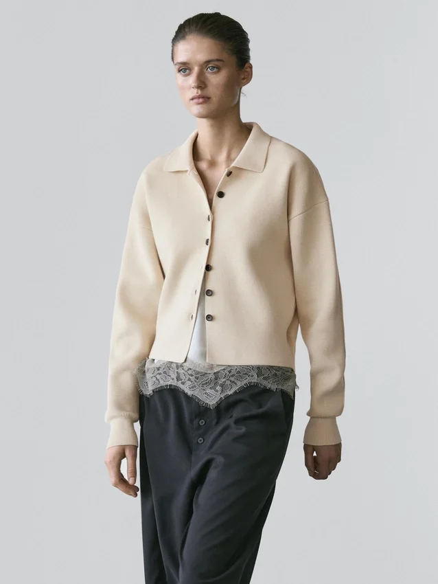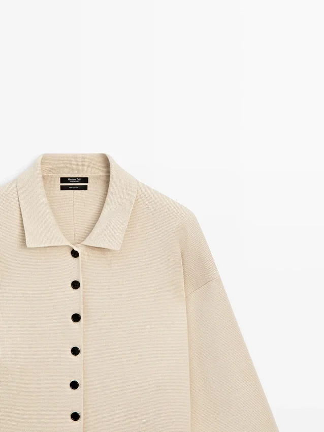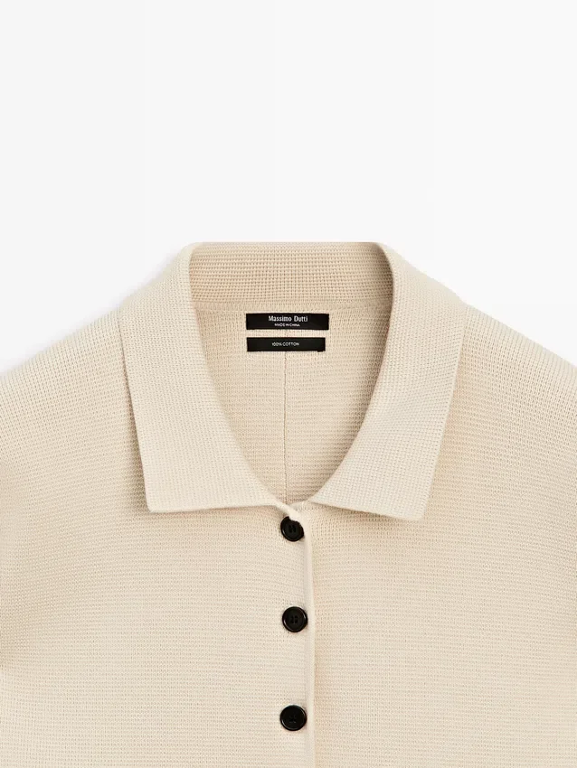 Cardigan realizzato in tessuto a maglia con cotone. Maniche lunghe con polsini a costine. Chiusura frontale con bottoni. Bordi a costine.
