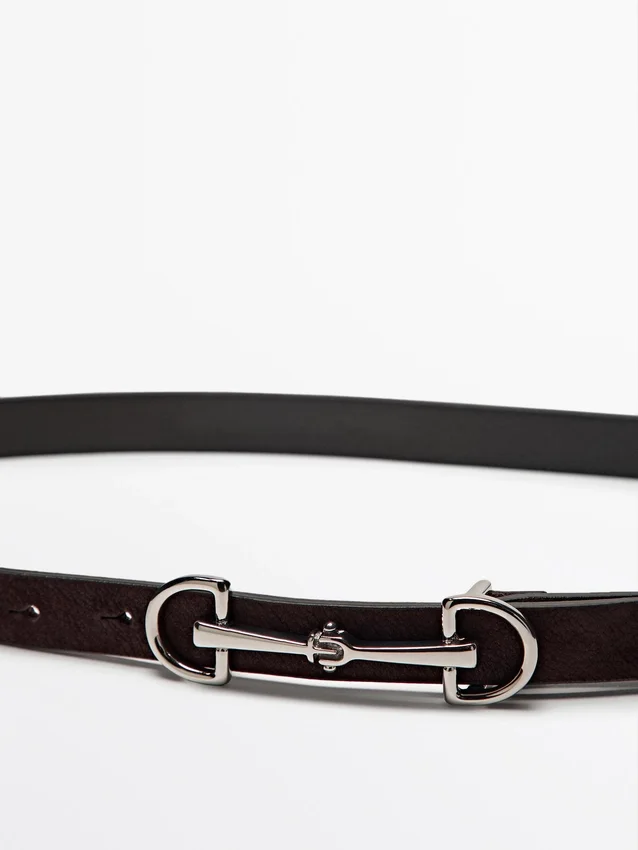Cintura realizzata in pelle di vacchetta al 100%. Realizzata in pelle nabuk. Larghezza 2 cm. Stile Equestrian.