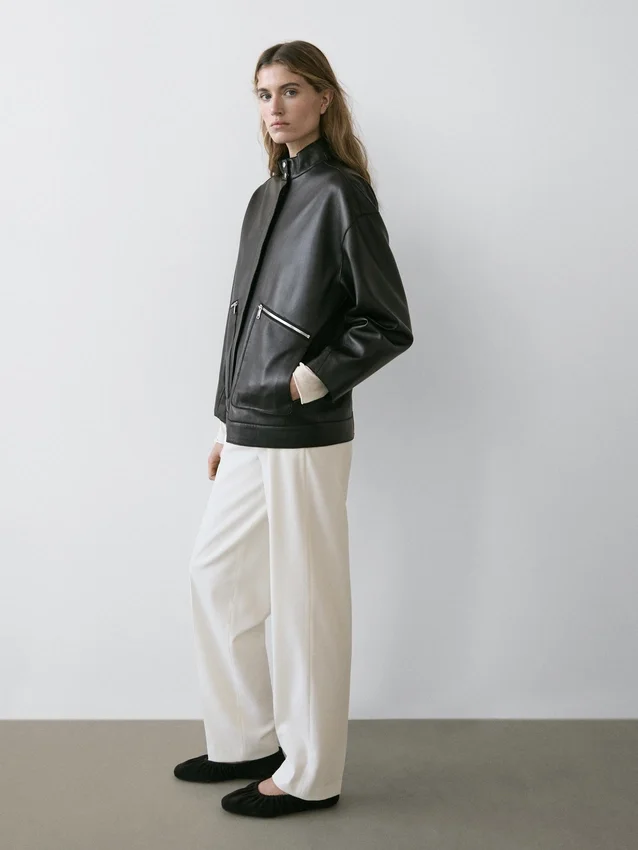 Recensisci per primo “Giacca in pelle nappa con dettagli sulle tasche”