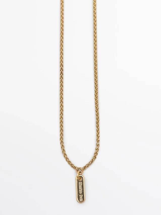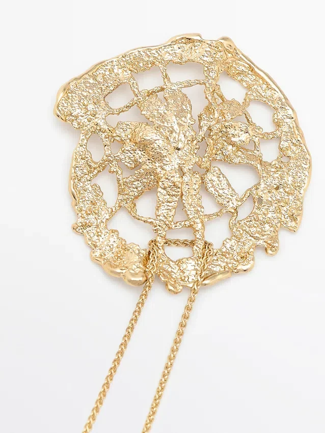 Collana a catena. Elemento astratto in metallo. Chiusura a moschettone.