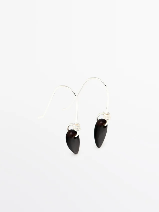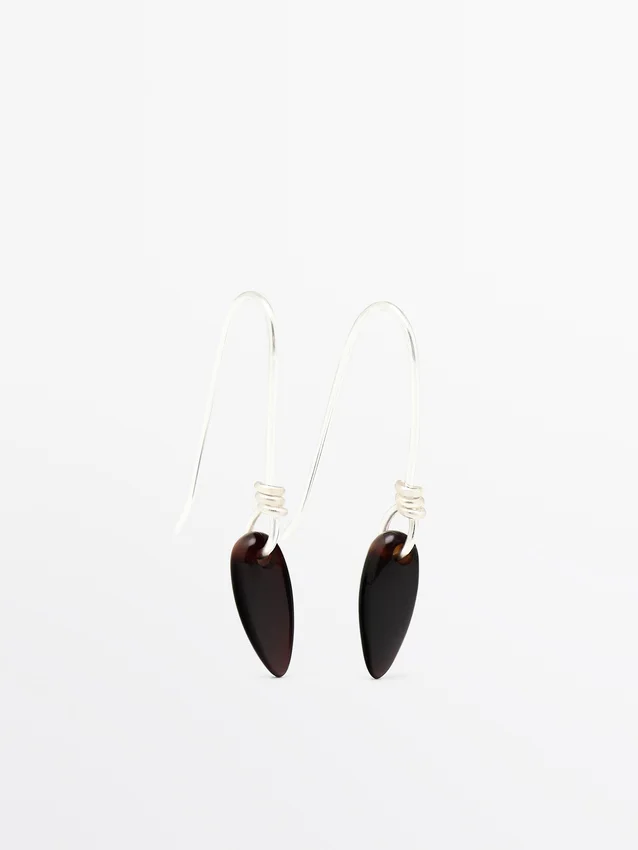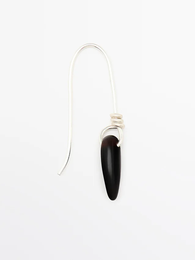 Orecchini pendenti con pietra. Finitura in tonalità argento. Ogni pietra presenta variazioni di colore e venature.