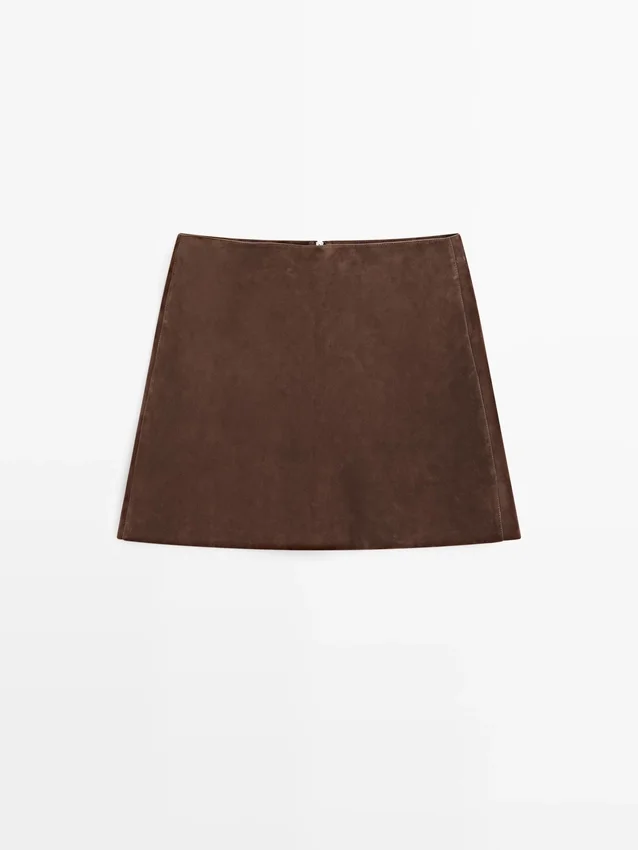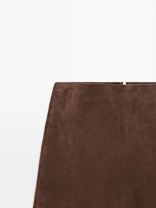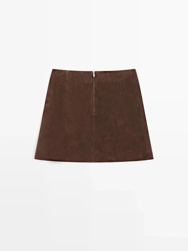 Gonna in pelle di capra con finitura scamosciata. Chiusura con cerniera sul retro.
