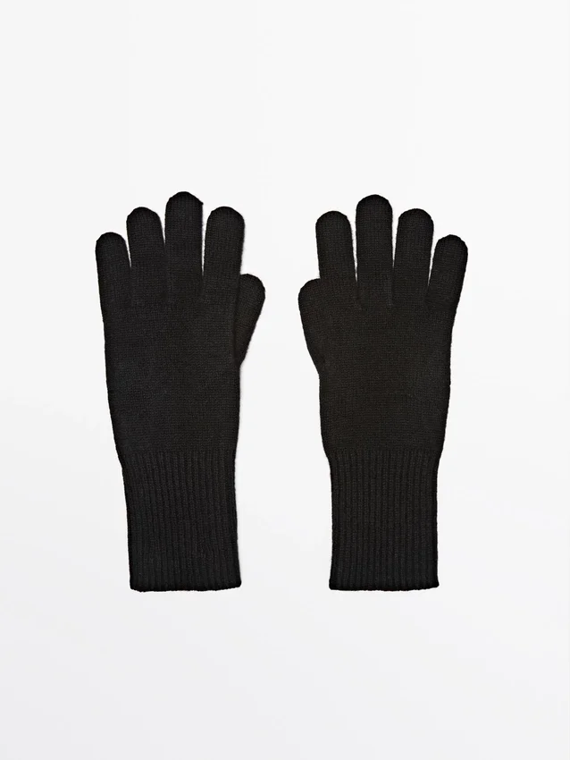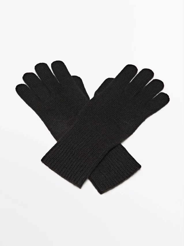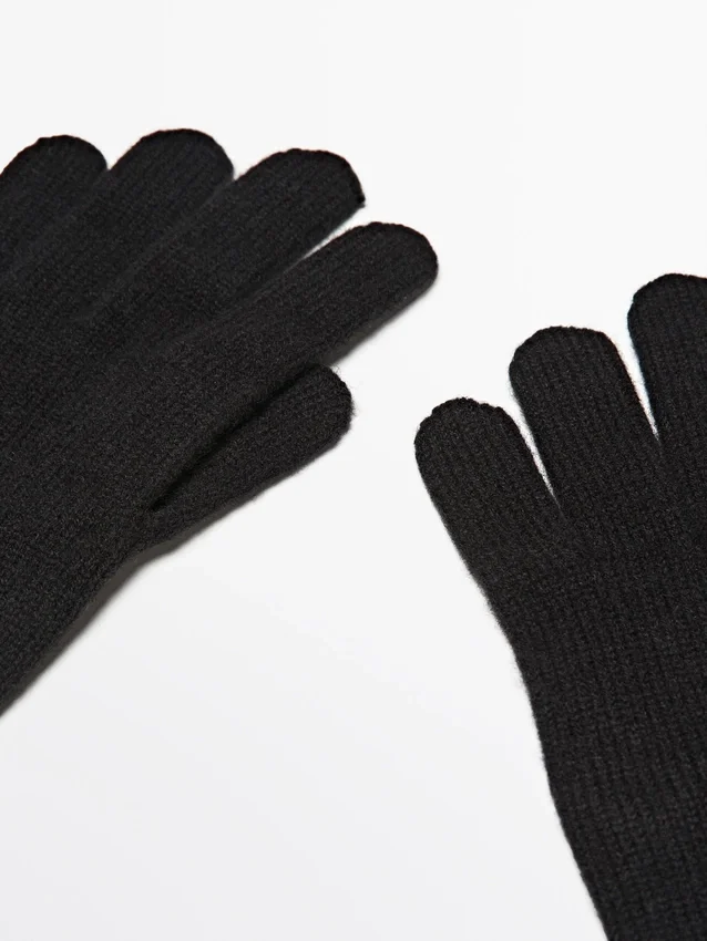 Guanti realizzati in tessuto a maglia misto lana. Bordi a costine.