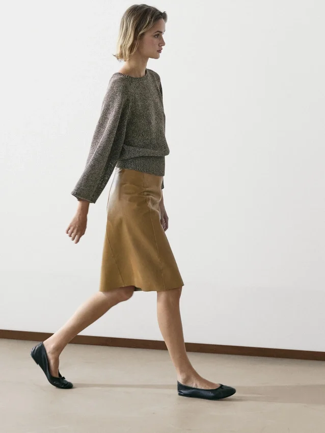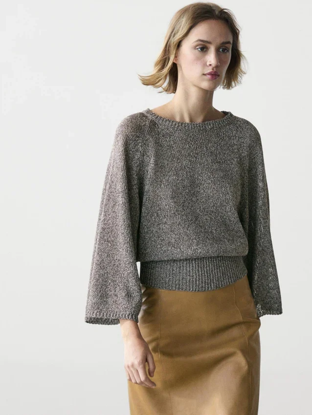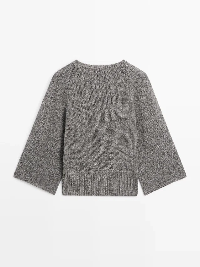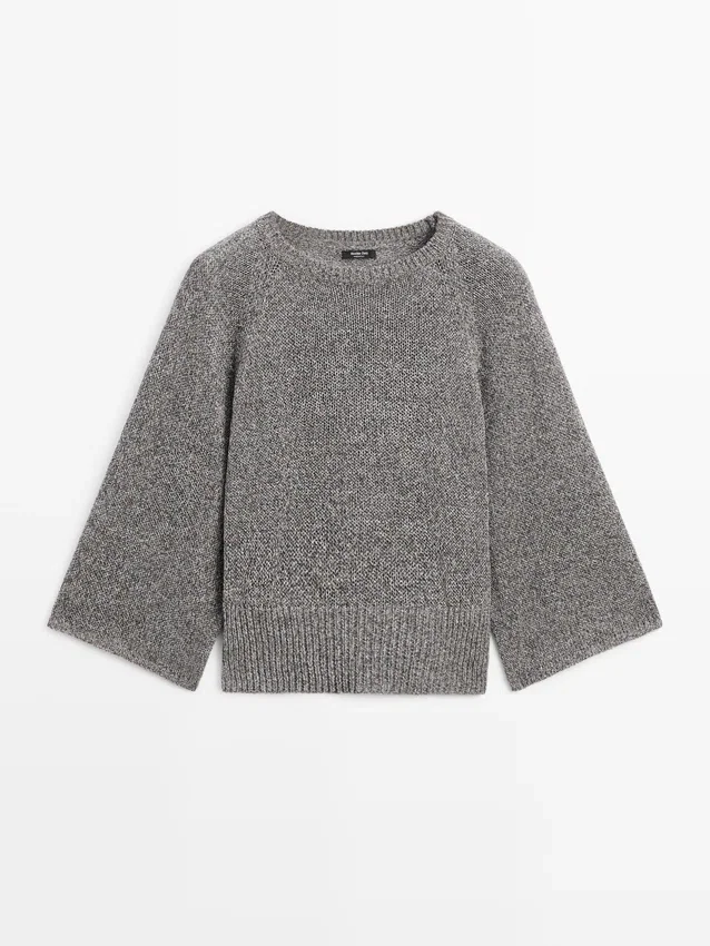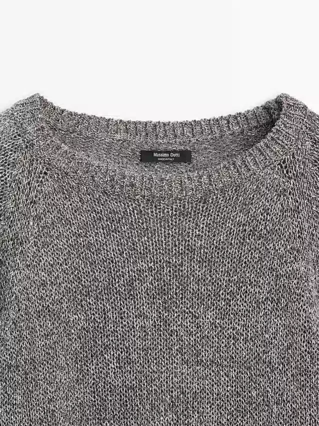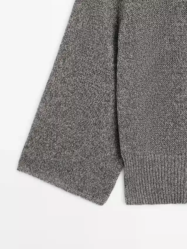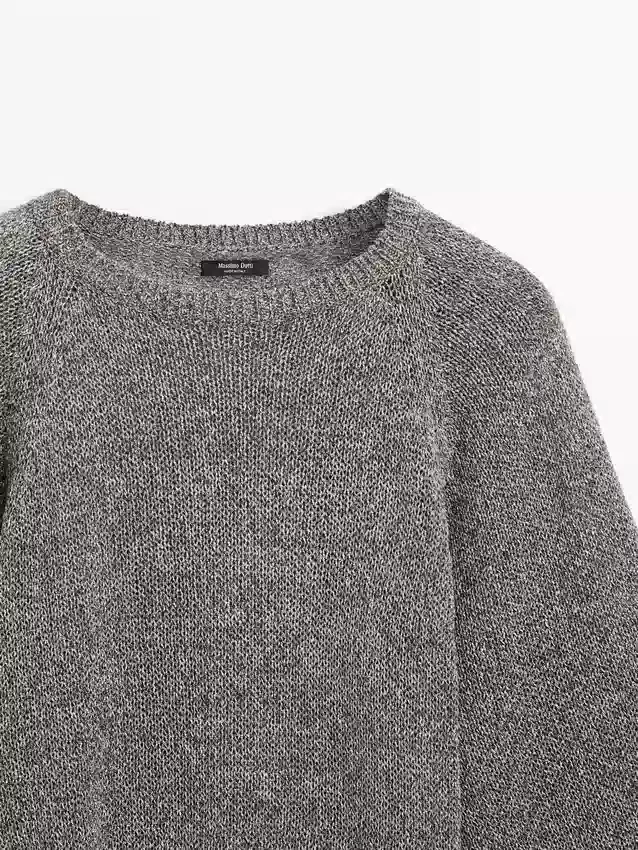 Maglione in maglia realizzato in tessuto misto cotone. Girocollo. Maniche lunghe e larghe. Bordi a costine.