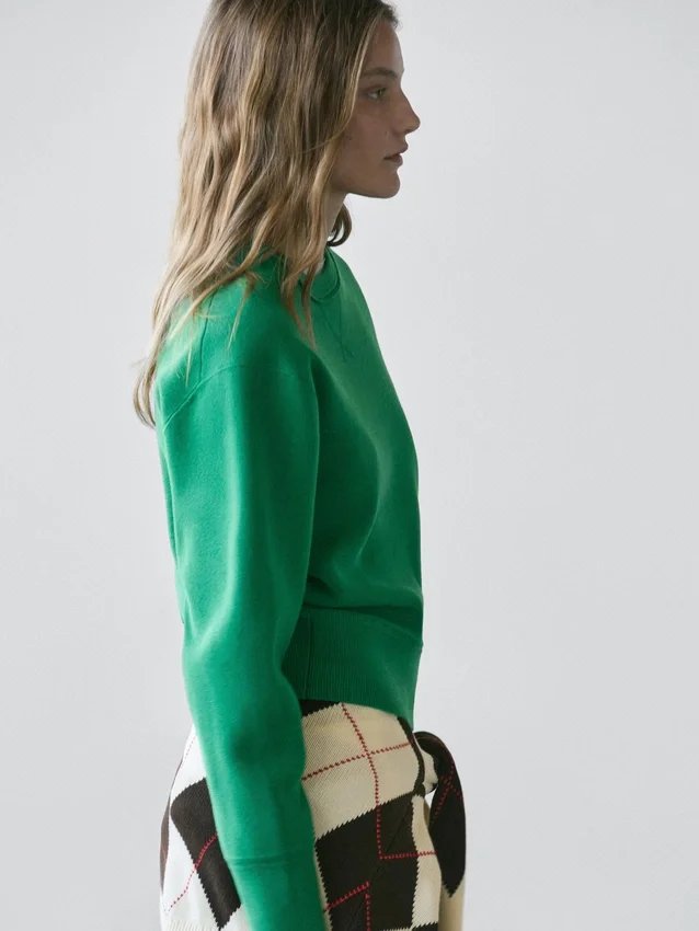 Gola rotonda. Maniche lunghe. Bordi a costine.