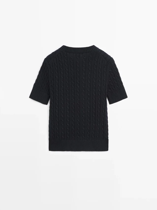 Maglione a maniche corte in maglia intrecciata