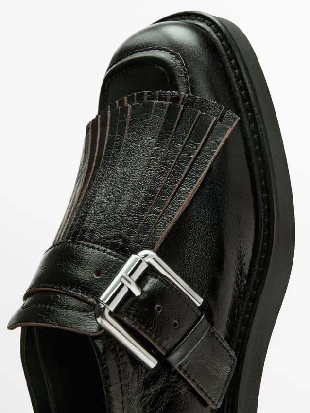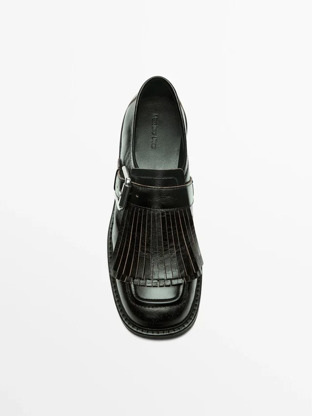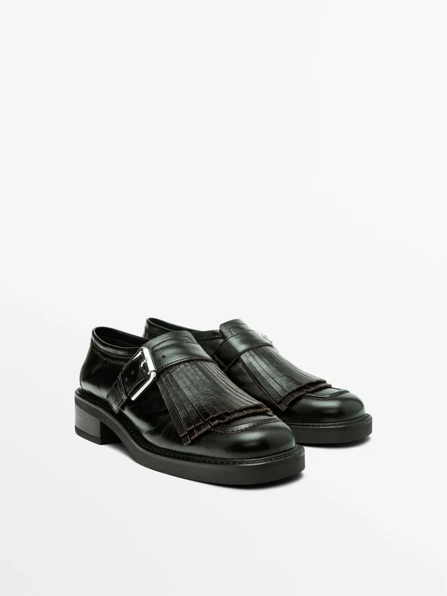 Scarpe modello Derby. Realizzate in pelle di vacchetta. Finitura invecchiata. Fodera e soletta in pelle. Dettaglio con fibbia in metallo. Logo sulla soletta. Dettaglio con frange. . Include soletta Airfit®: soletta in schiuma tecnica flessibile, progettata per offrire un maggiore comfort.