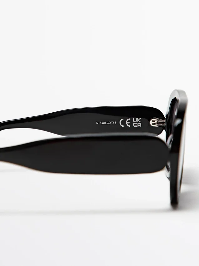 Occhiali da Sole in resina. Lenti con filtro di protezione UV di categoria 3. Include una custodia protettiva.Composizione