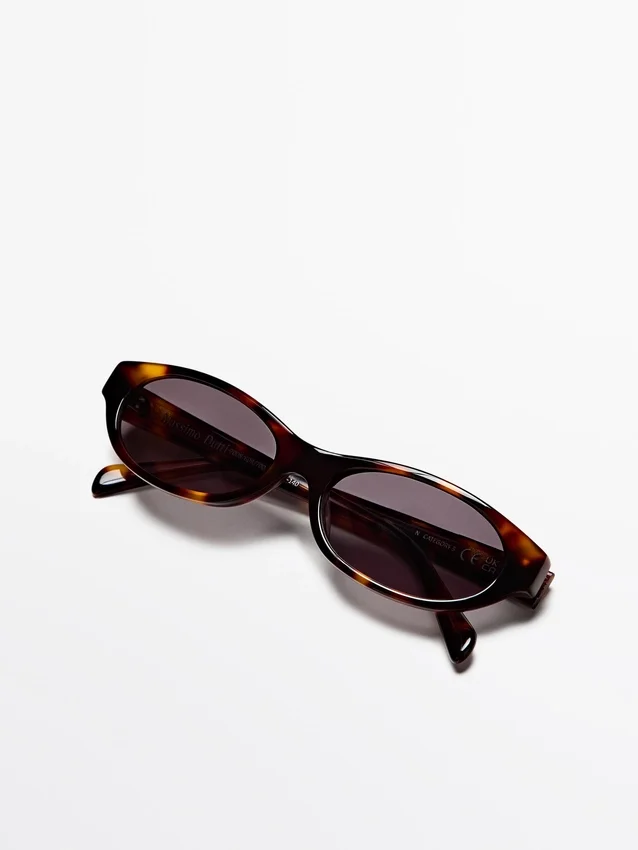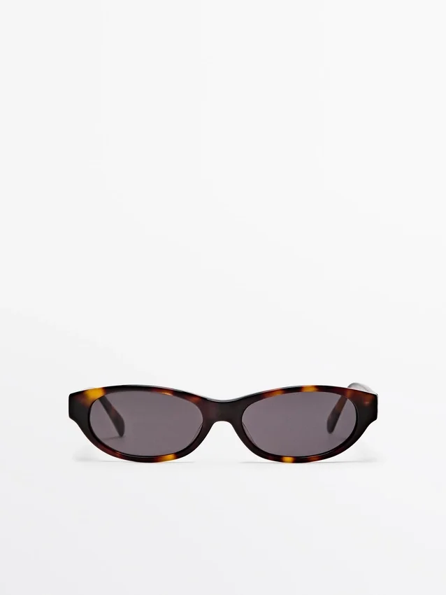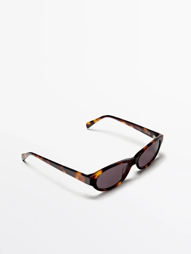 Occhiali con montatura in plastica effetto tartaruga. Lenti con filtro di protezione UV di categoria 3. Include una custodia protettiva.