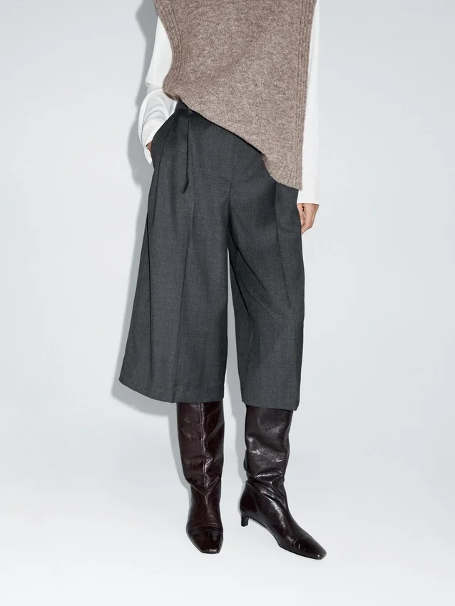 Bermuda. Chiusura con zip e ganci con bottone interno. Due tasche laterali. Una tasca a filetto sul retro. Stampa a quadri. Doppia pince sul davanti.