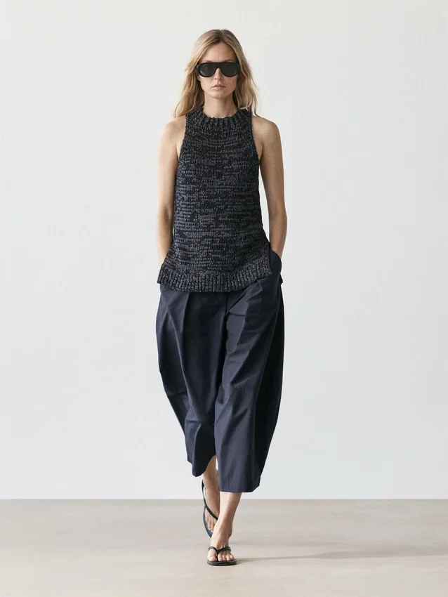Pantaloni realizzati in tessuto fluido. Chiusura frontale con zip e bottone superiore. Due tasche laterali. Dettaglio a pieghe sul davanti. Con una vestibilità più corta del solito, che solitamente termina sopra la caviglia.