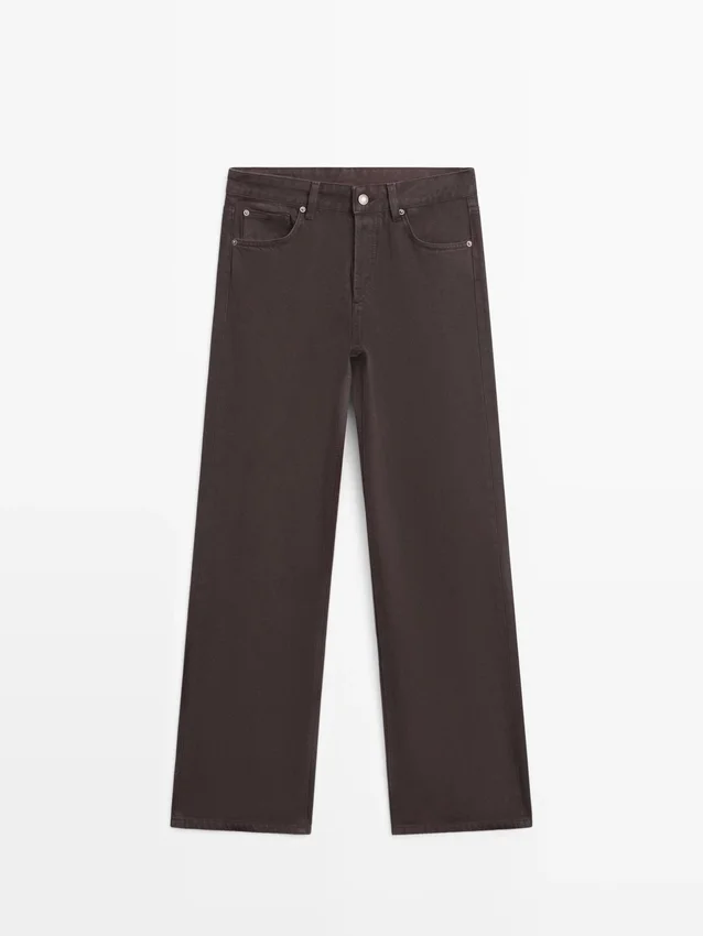 Jeans a gamba larga: questo modello ha un taglio ampio e morbido dai fianchi alle caviglie, offrendo comfort. Chiusura frontale con zip e bottone in alto. Design a cinque tasche.
