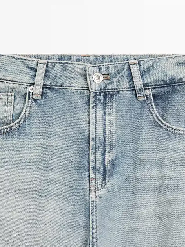 Jeans dal taglio “Barrel Fit”: questo modello presenta una linea più ampia sulle cosce e una gamba più stretta verso la caviglia, una via di mezzo tra il taglio slim e quello regular. Cintura con passanti. Chiusura frontale con cerniera e bottone superiore. Design a cinque tasche. Disponibile capo coordinato.