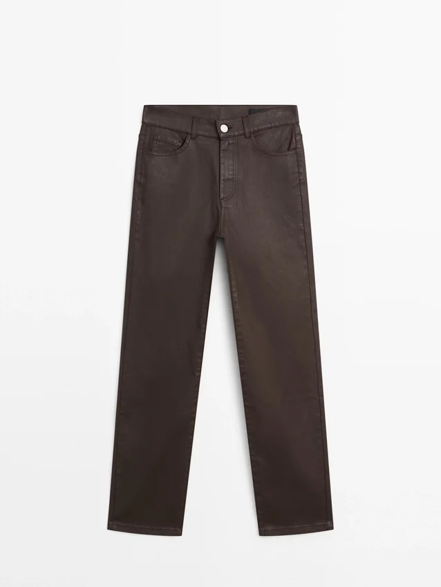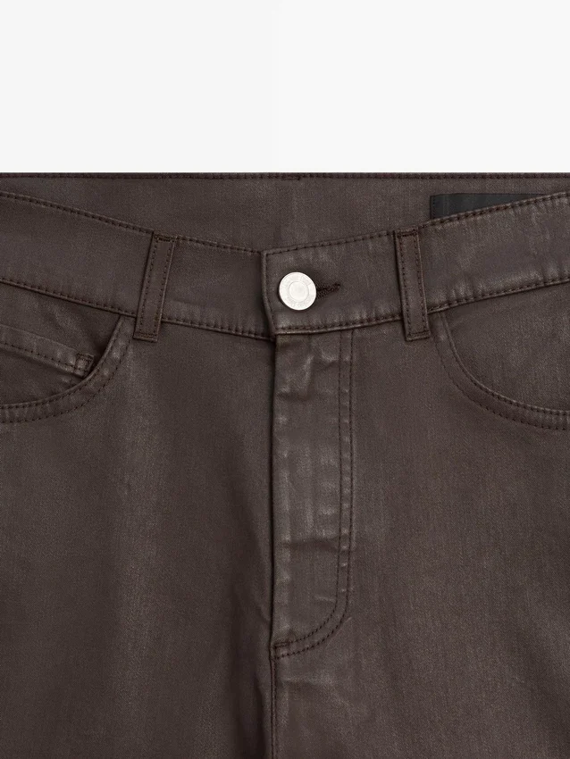 Pantaloni a gamba dritta: silhouette dritta dalla vita alla caviglia, senza ulteriori regolazioni della gamba. Vita alta. Chiusura frontale con bottoni. Design a cinque tasche.