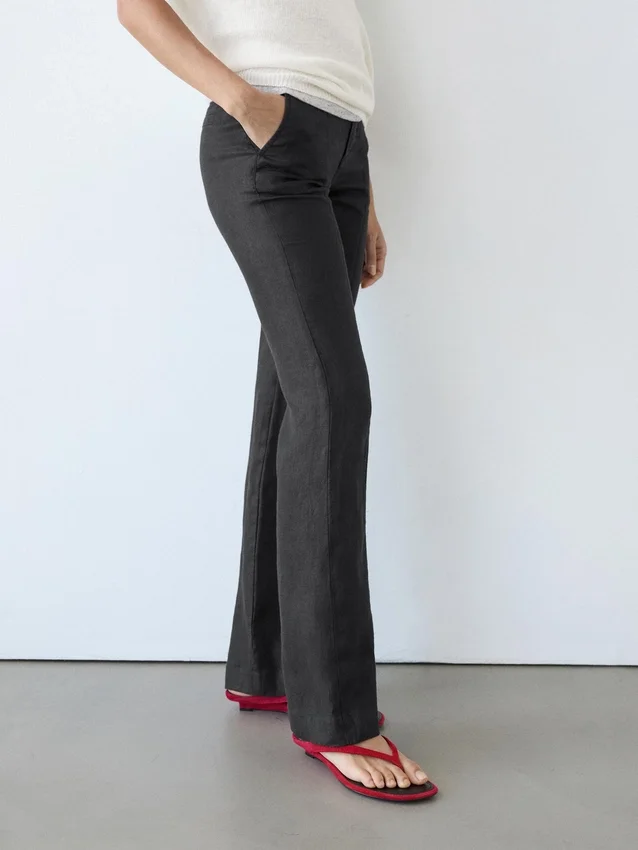 Pantaloni a zampa d’elefante in 100% lino