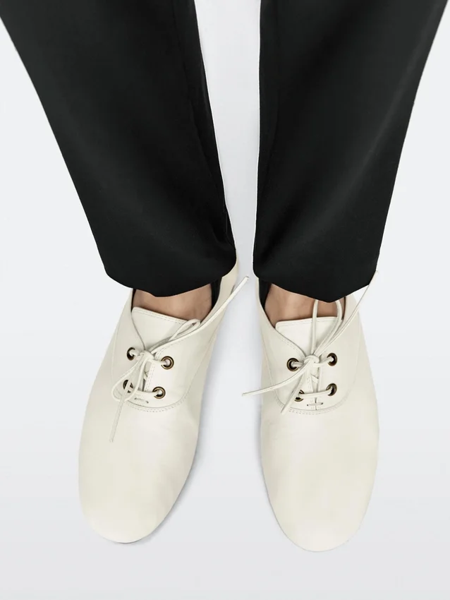 Realizzate in morbida pelle di montone. Fianchi a due occhielli. Decorate con borchie argentate.