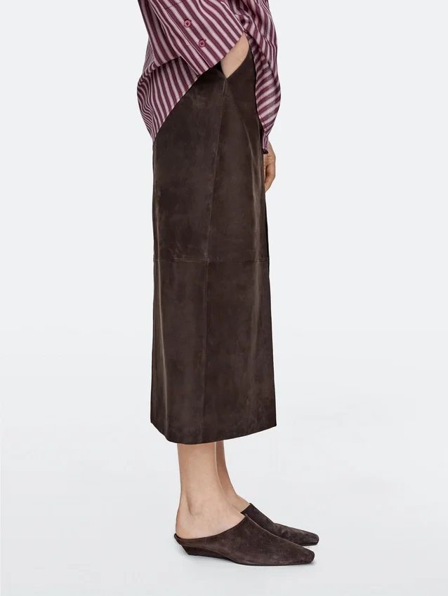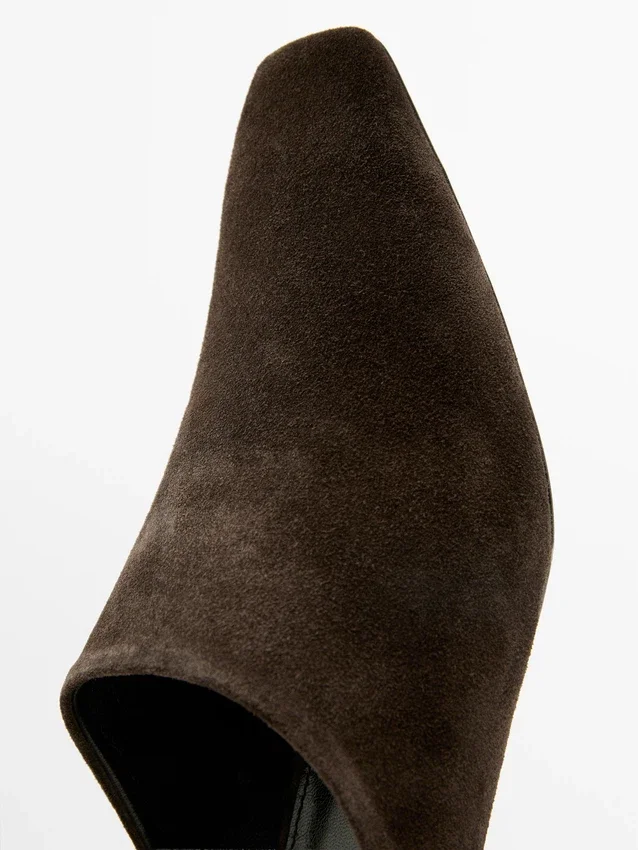 Realizzate in pelle di vacchetta con finitura scamosciata. Senza tallone. Fodera e soletta in pelle. Tacco a zeppa. Tacco: 2,5 cm.