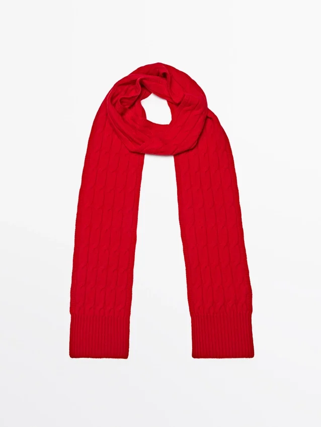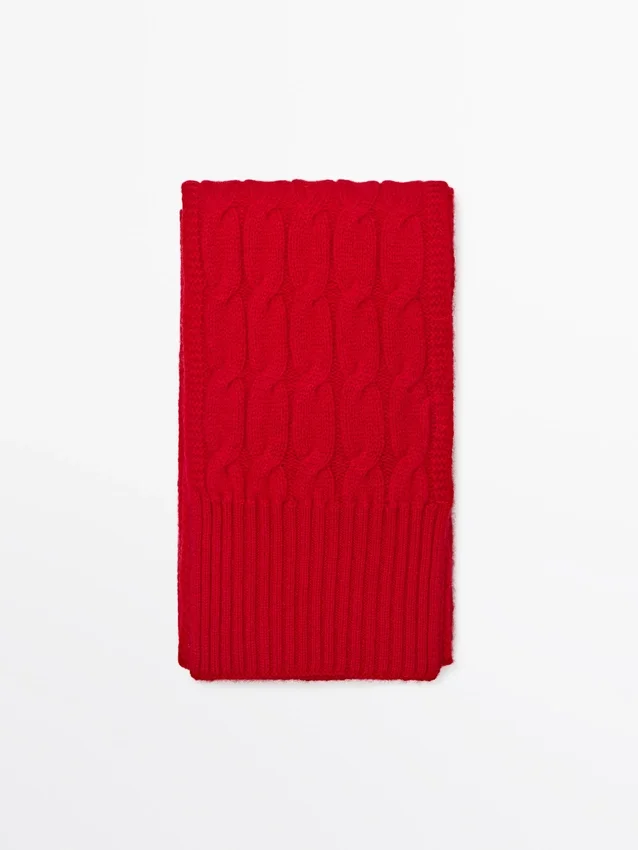 Sciarpa realizzata in tessuto misto lana. Dettaglio intrecciato.