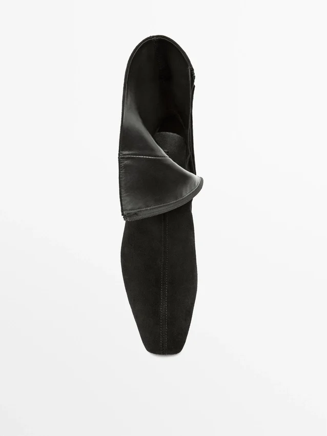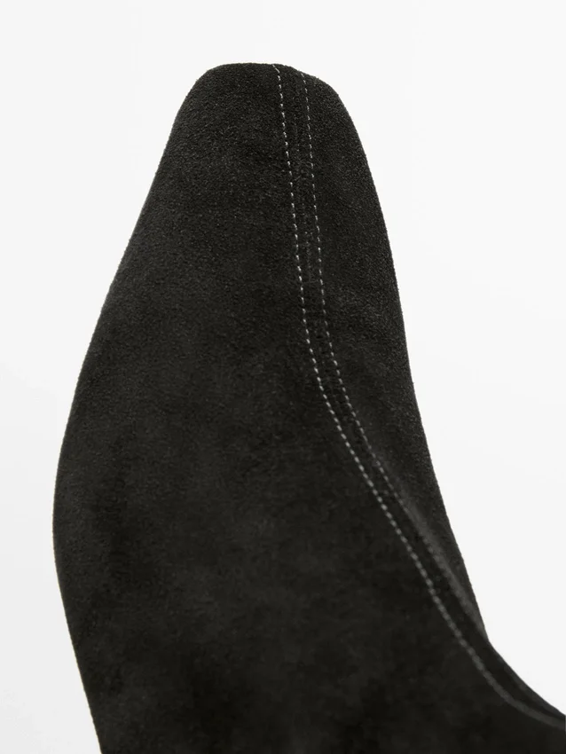 Realizzati in pelle bovina con finitura scamosciata. Pelle morbida. Tacco a zeppa. Chiusura con cerniera laterale.