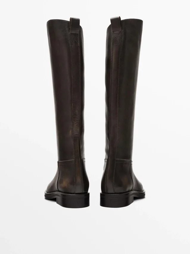 Realizzati in pelle di vacchetta. Pelle spazzolata dall’effetto invecchiato. Cinturino alla caviglia staccabile. Applicazioni dorate. Fodera e soletta in pelle. Altezza gambale: 42 cm. Larghezza gambale: 37 cm. Tacco: 3 cm. Include soletta Airfit®: soletta in schiuma tecnica flessibile, progettata per offrire un maggiore comfort.