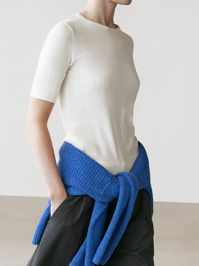 T-Shirt in misto cotone. Girocollo. Maniche al gomito.