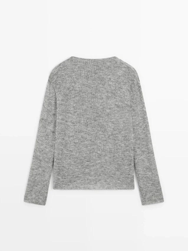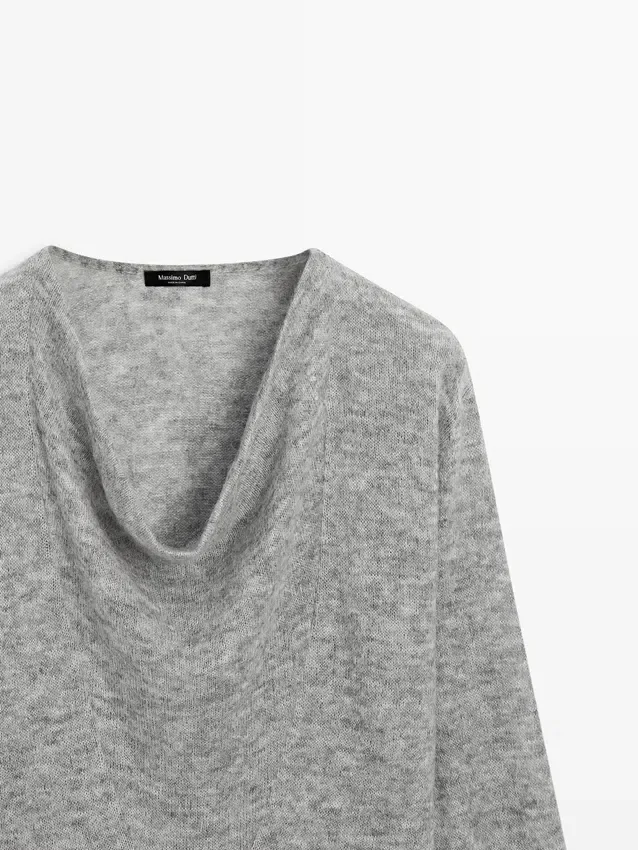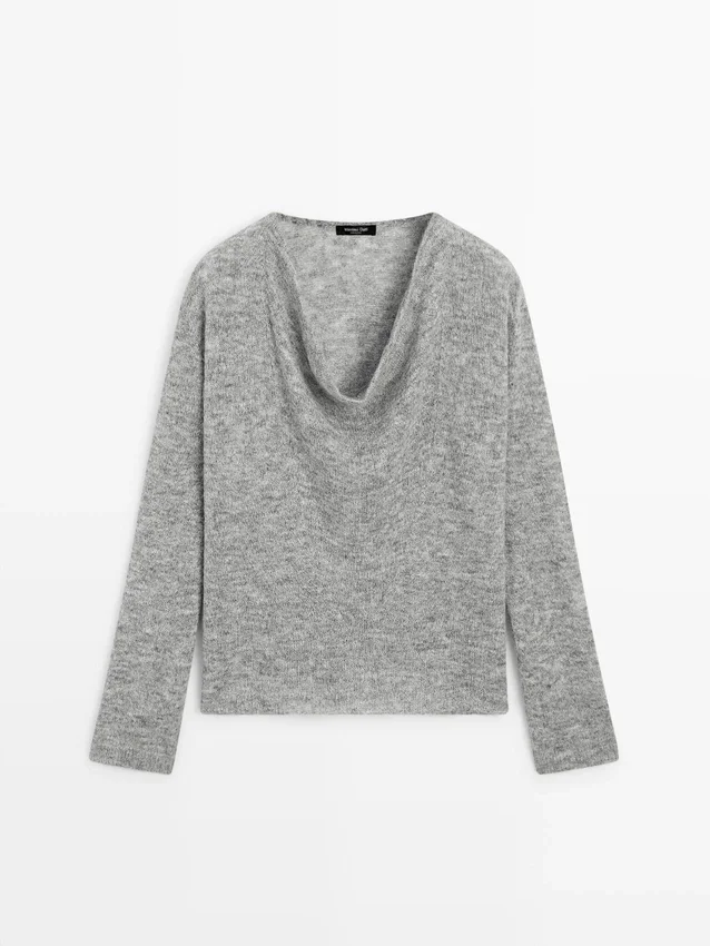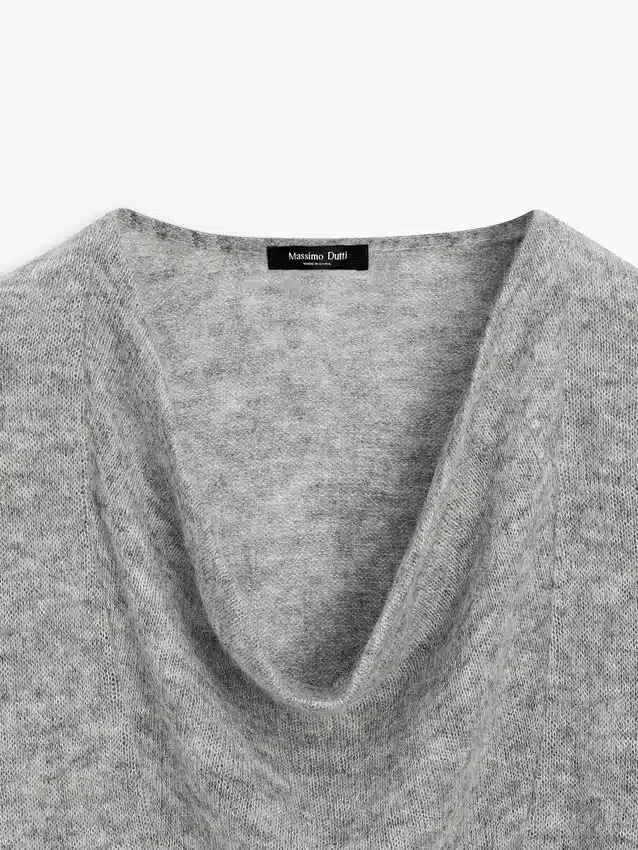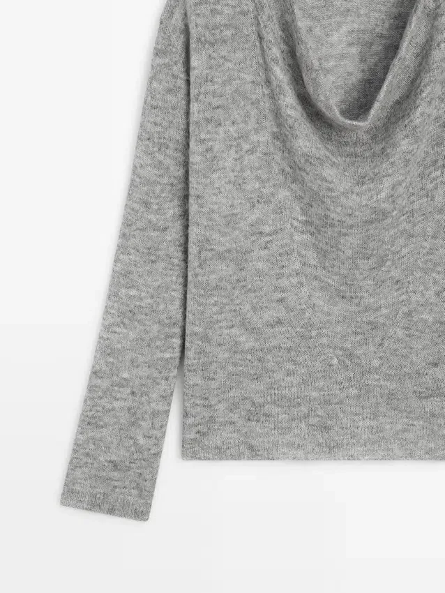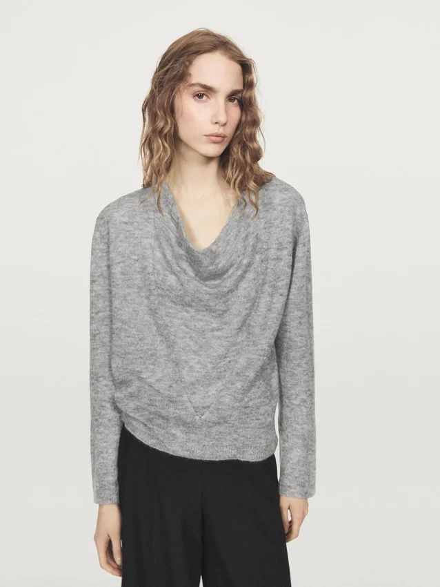 Maglione in maglia mista lana. Collo drappeggiato. Maniche lunghe. Silhouette ampia e morbida, non aderente.Composizione