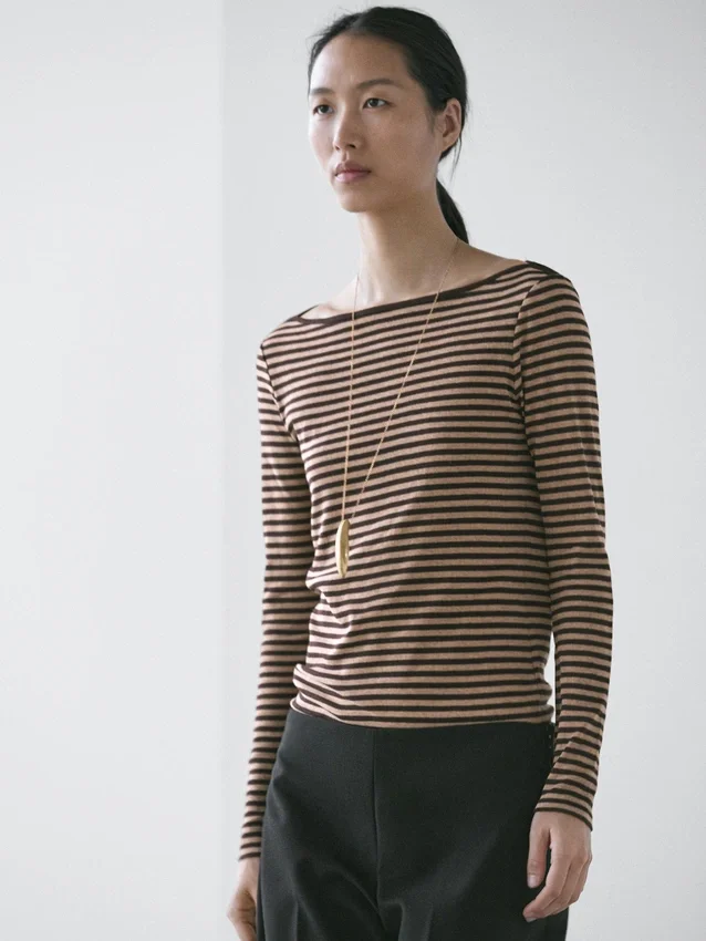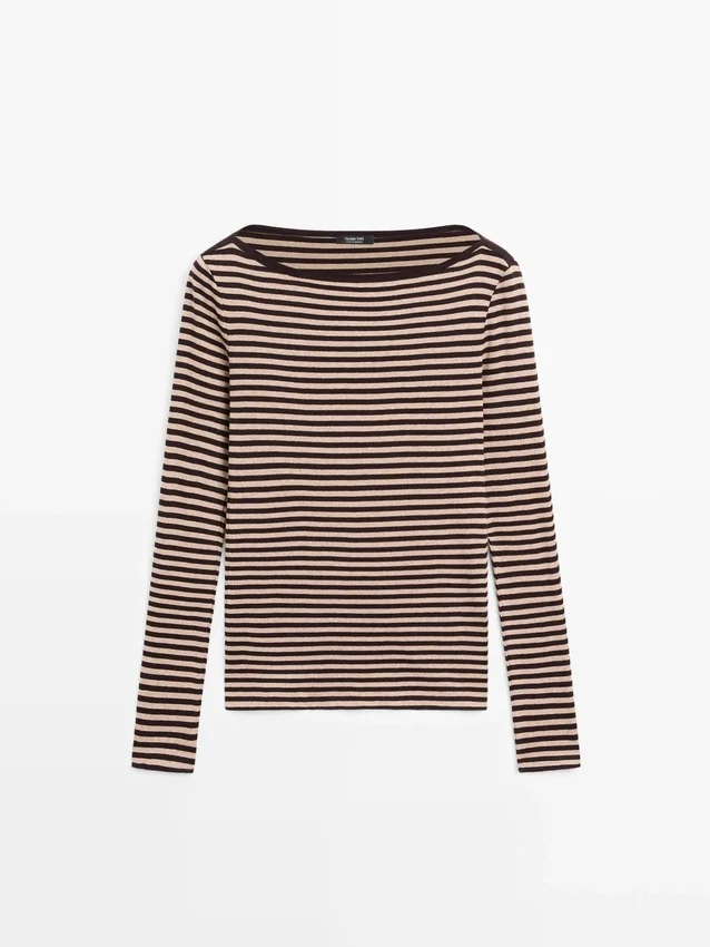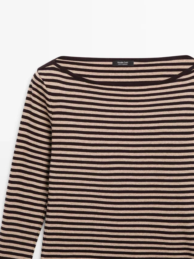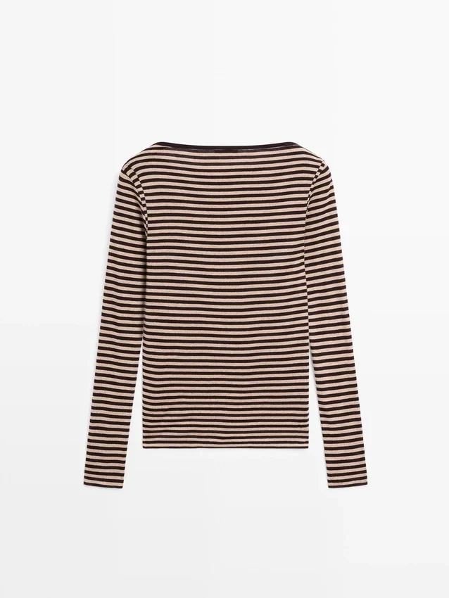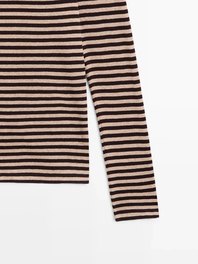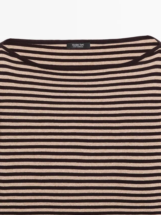 T-Shirt in cotone. Girocollo. Maniche lunghe. Stampa a righe.