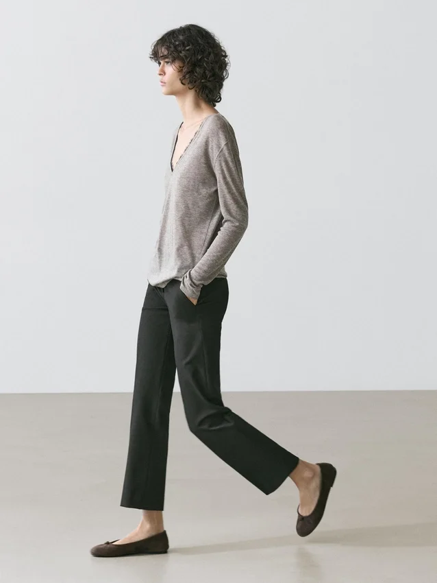 T-Shirt realizzata in tessuto misto Lyocell. Scollo a V. Maniche lunghe. Dettagli in pizzo.Composizione