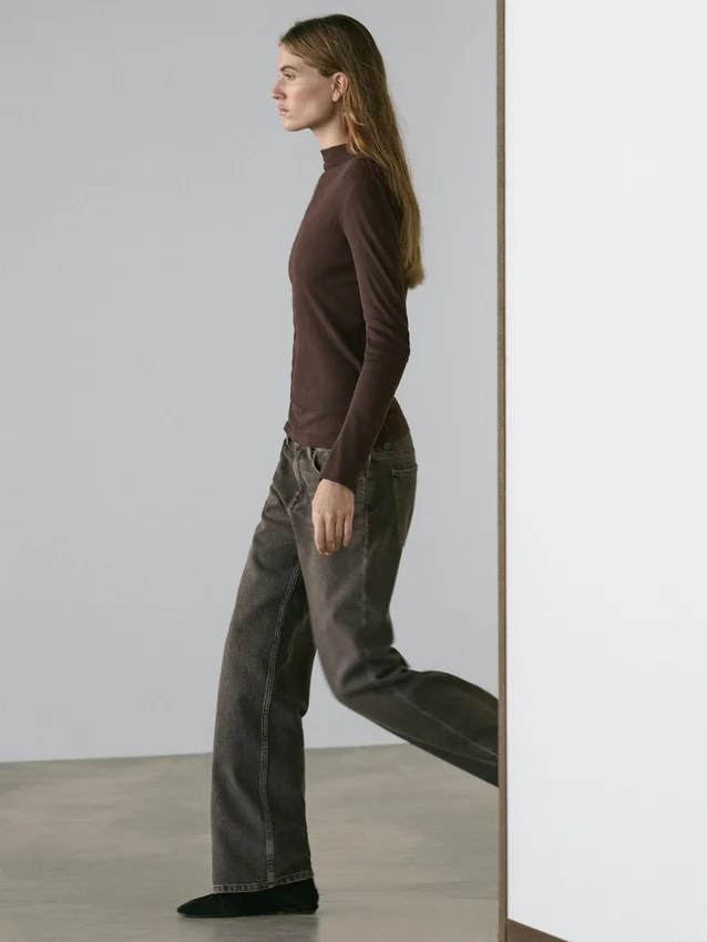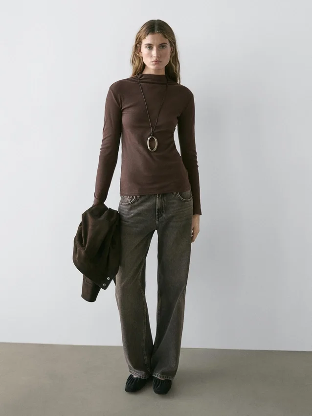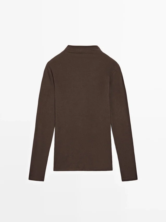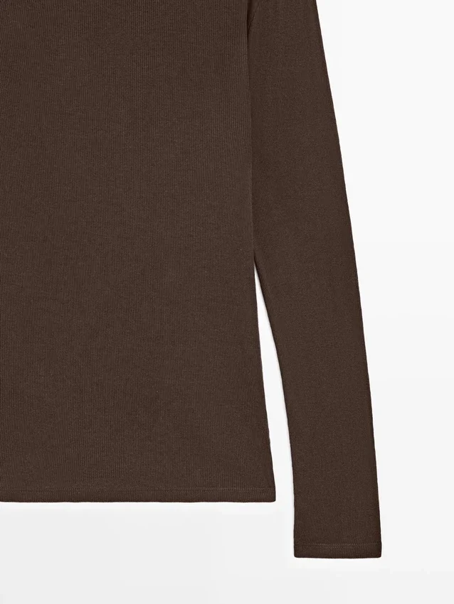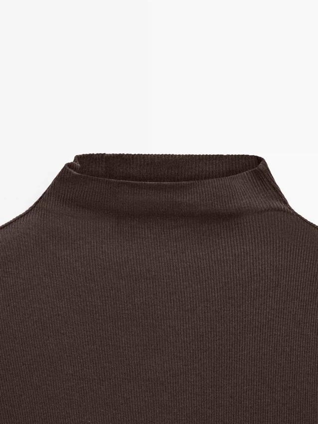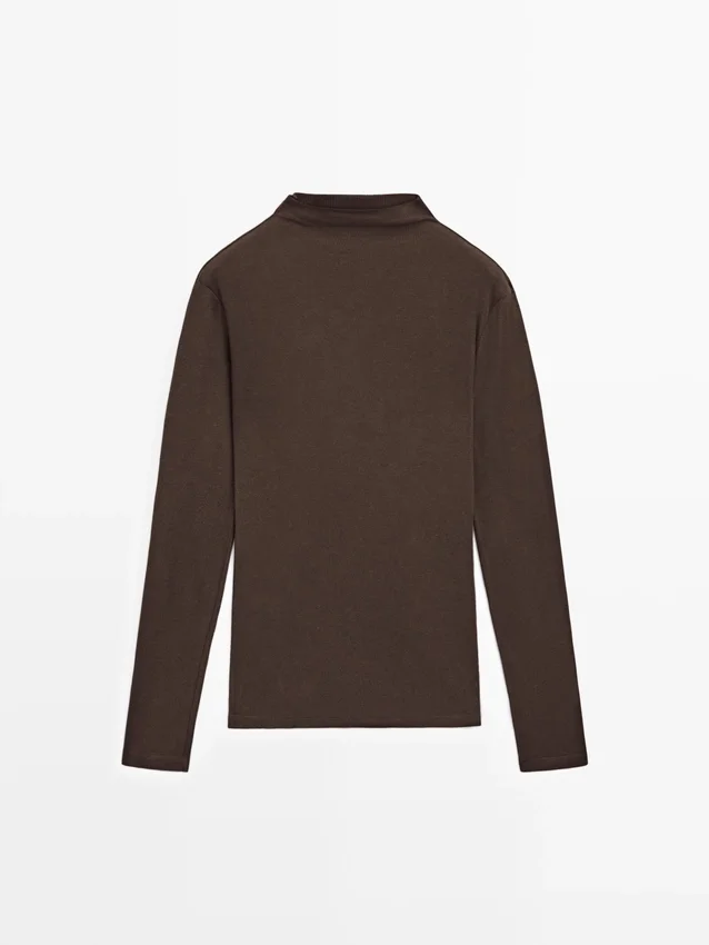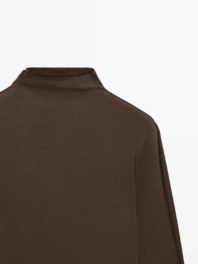 T-Shirt in cotone. Silhouette leggermente aderente, che dona un aspetto più definito e snello. Maniche lunghe. Collo alto. Tessuto a costine.