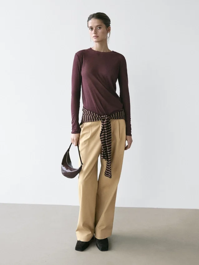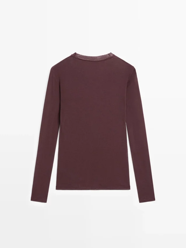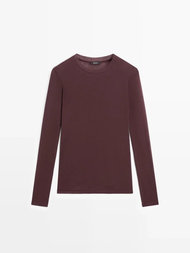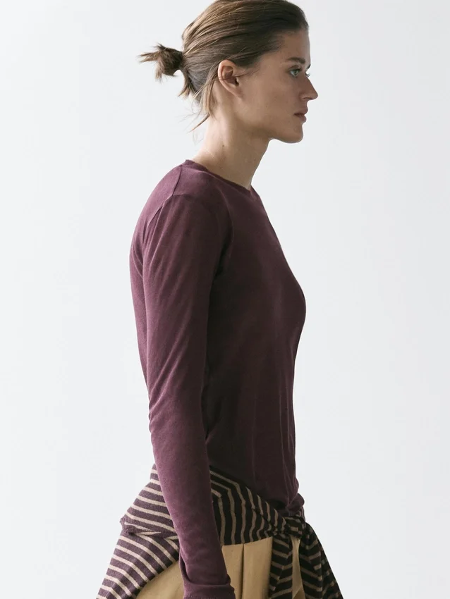T-Shirt in cotone. Silhouette leggermente aderente, che dona un aspetto più definito e snello. Girocollo. Maniche lunghe.