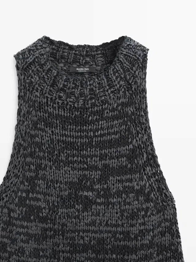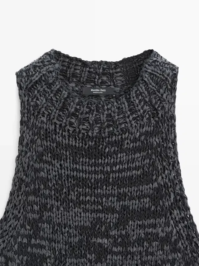 Top realizzato in tessuto misto cotone. Scollo all’americana. Senza maniche. Spacchi laterali. Finitura effetto screziato.