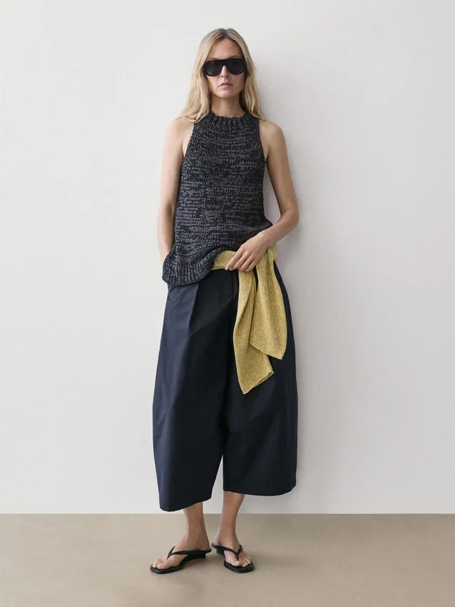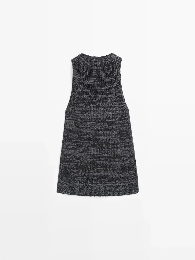 Top con scollo all’americana in maglia screziata