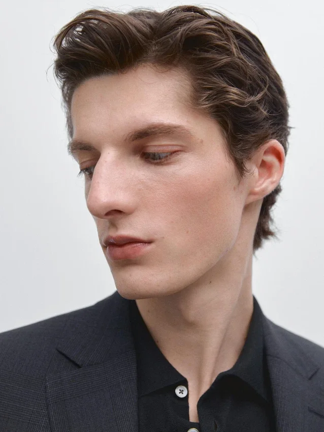 Blazer in misto lana. Colletto con revers a lancia e asola. Maniche lunghe con polsini abbottonati. Chiusura a due bottoni. Due tasche con patta. Tasca a filetto inserita sul petto. Stampa a quadri. Due spacchi posteriori. Foderata. Cool Wool: tessuto leggero, traspirante e resistente alle pieghe. Questo capo fa parte di un abito da uomo.