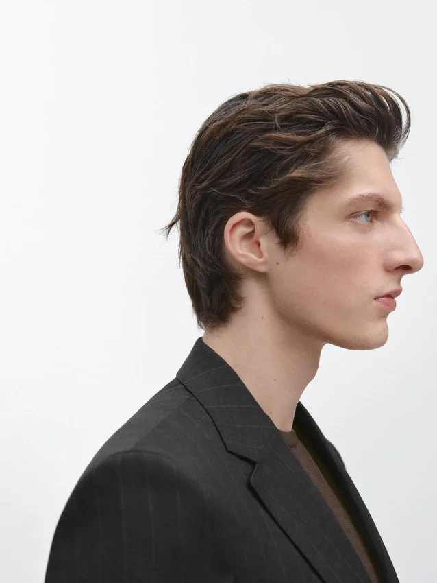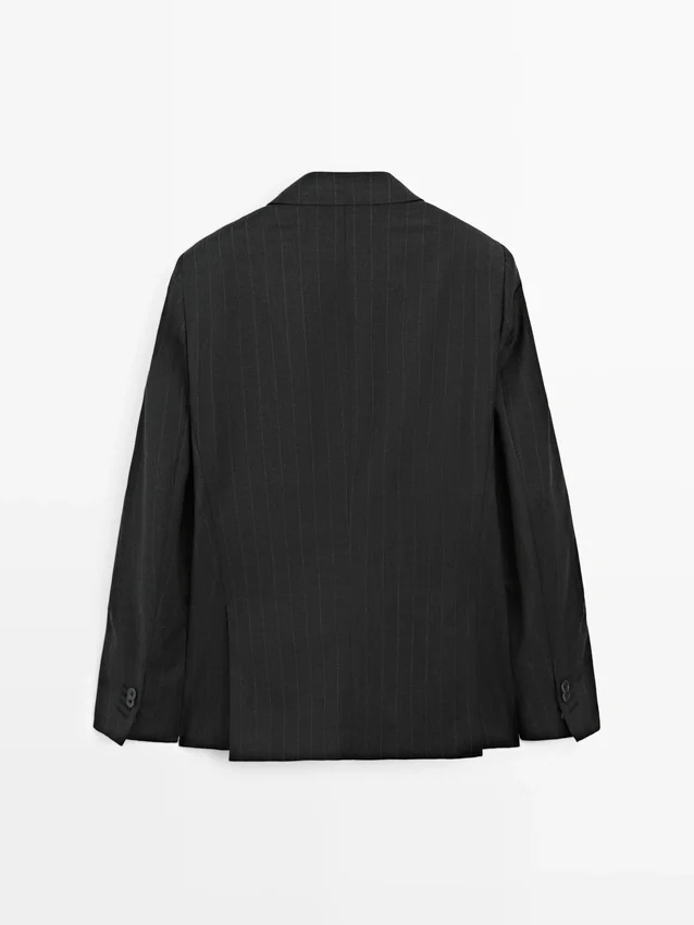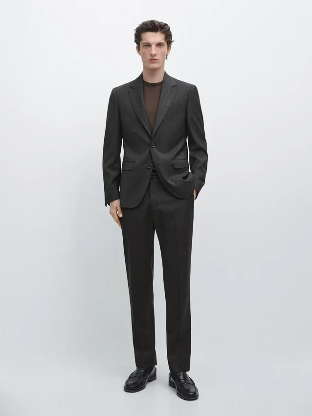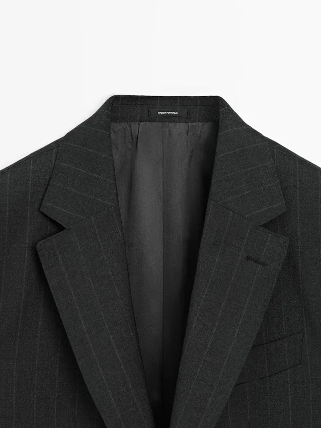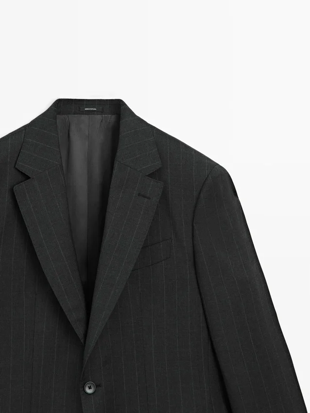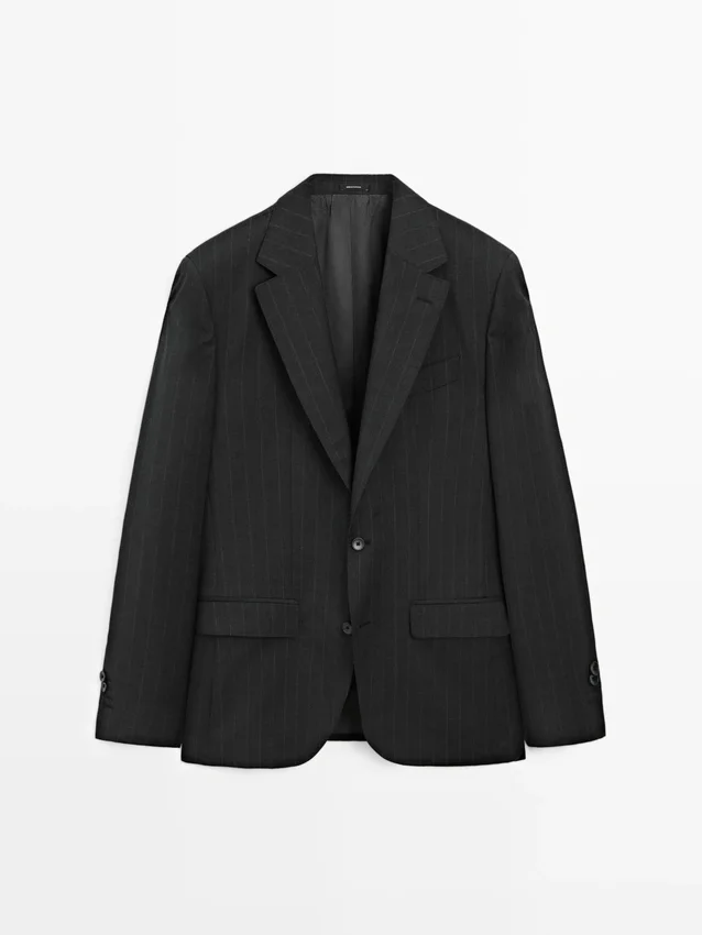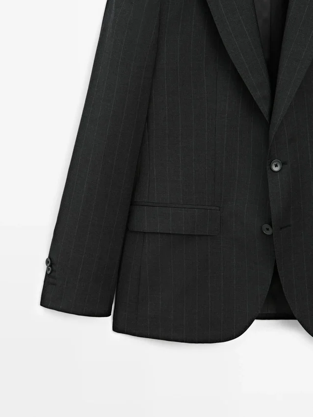 Blazer realizzato in tessuto principale 100% lana. Colletto con revers a lancia e asola. Maniche lunghe con polsini abbottonati. Chiusura a due bottoni. Due tasche con patta. Tasca a filetto sul petto. Tasche interne. Gessato. Dettagli di impuntatura. Cool Wool: tessuto leggero, traspirante e resistente alle pieghe. Questo capo fa parte di un abito da uomo.