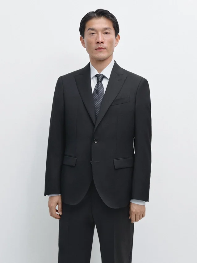 Blazer realizzato in tessuto principale 100% lana. Maniche lunghe con polsini abbottonati. Chiusura a due bottoni. Due tasche a filetto. Due tasche a filetto sul petto. Foderata. Cool Wool: tessuto leggero, traspirante e resistente alle pieghe. Questo capo fa parte di un Abito da Uomo.